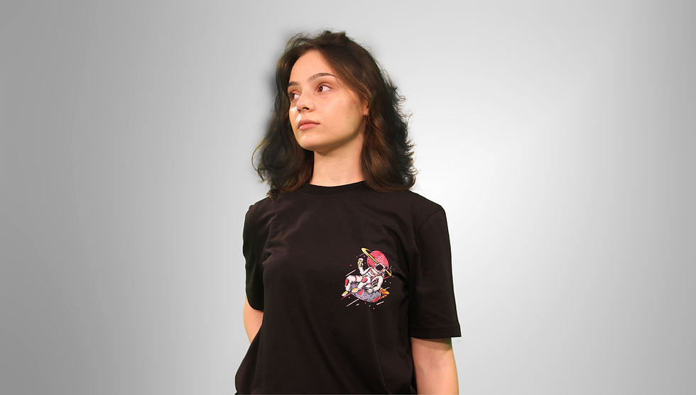 ASTRONAUT BASKILI SİYAH TİŞÖRT